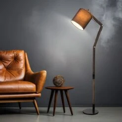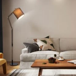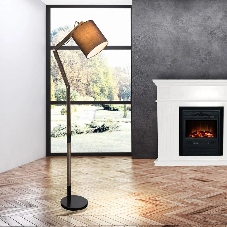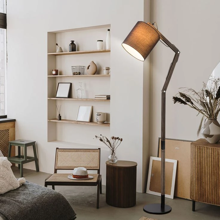 Stehlampe, Holz, Textil, Grau, Schwarz, Beweglich, H 172 Cm