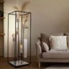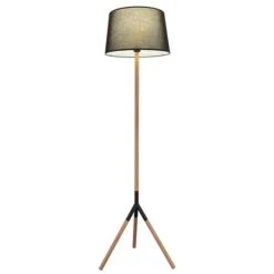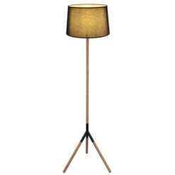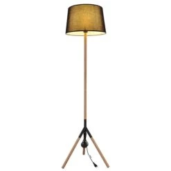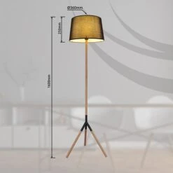 Diese Stehleuchte begeistert durch modernes Design. An einem Dreibein aus Holz befindet sich mit einer Höhe von 160 cm eine E27 Fassung mit einem formschönen Textilschirm in Schwarz. Die E27 Fassung ermöglicht Ihnen bis zu einer maximalen Leistung von 40 Watt, selbst über Lichtfarbe und Helligkeit zu bestimmen. Aufgrund von Langlebigkeit und Stromersparnis empfehlen wir LED Leuchtmittel.Â