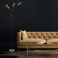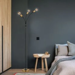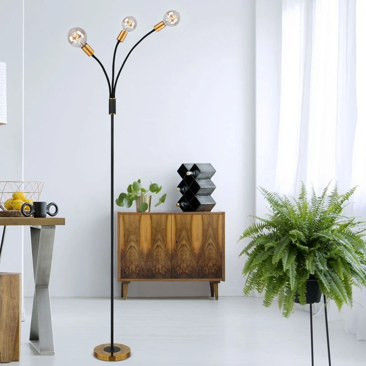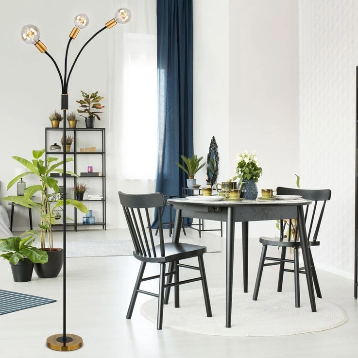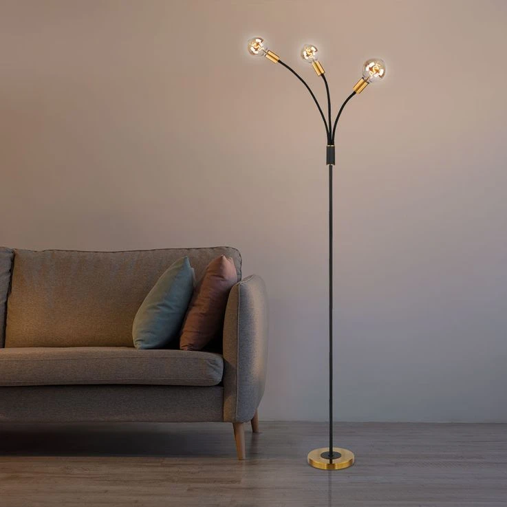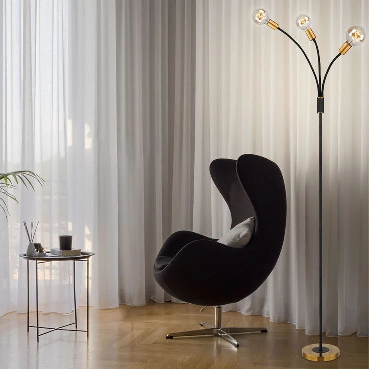 Die LED-Stehleuchte EDDY, 3-flammig mit bequem erreichbarem Fußschalter, besticht durch ihr antikes und zugleich schlichtes Design.