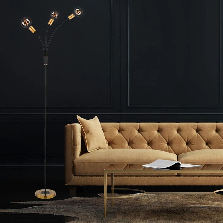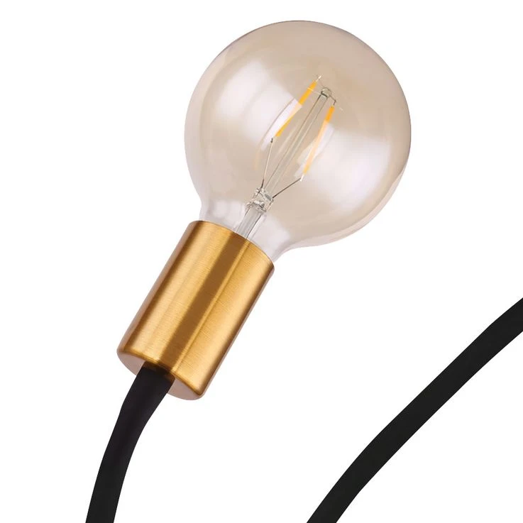 Die drei einfachen, goldfarbenen E27 Fassungen überlassen Ihnen die freie Wahl des Leuchtmittels (max. 60W).