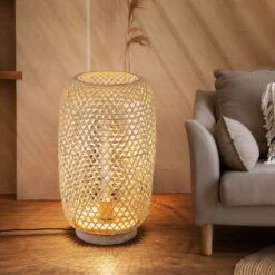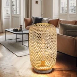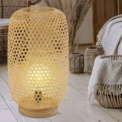 Stehleuchte, Bambus-Geflecht, Natur, H 55 Cm