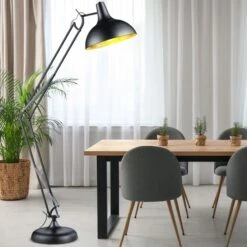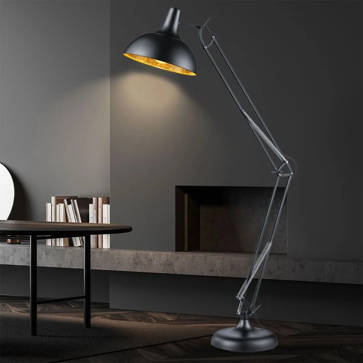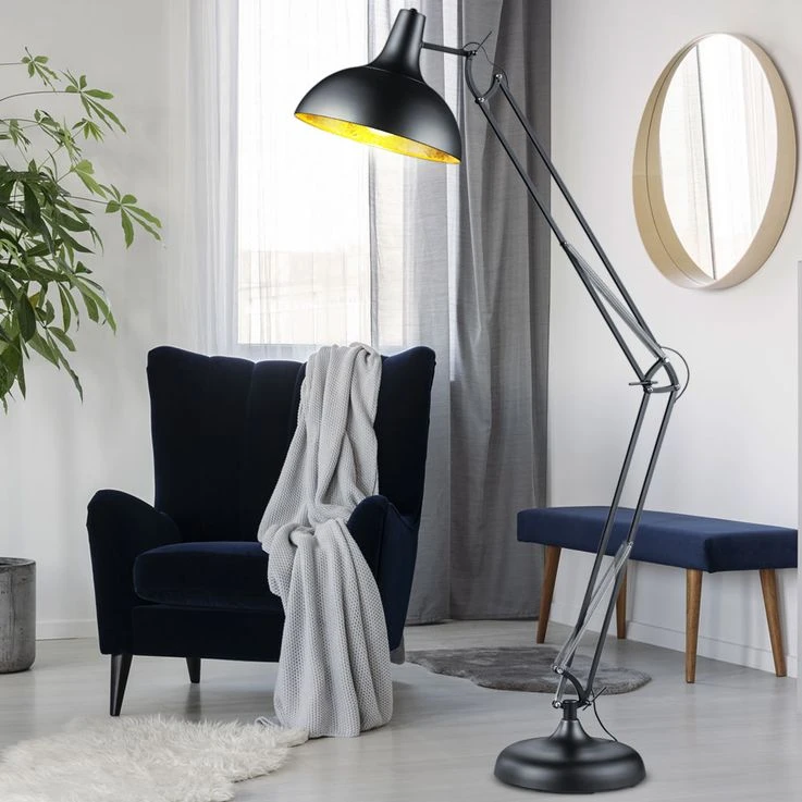 Stehleuchte, Gelenke Beweglich, Schwarz, Gold, H 180 Cm