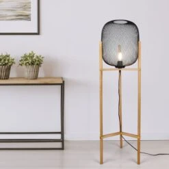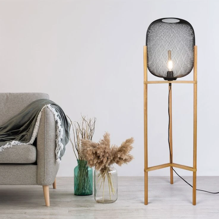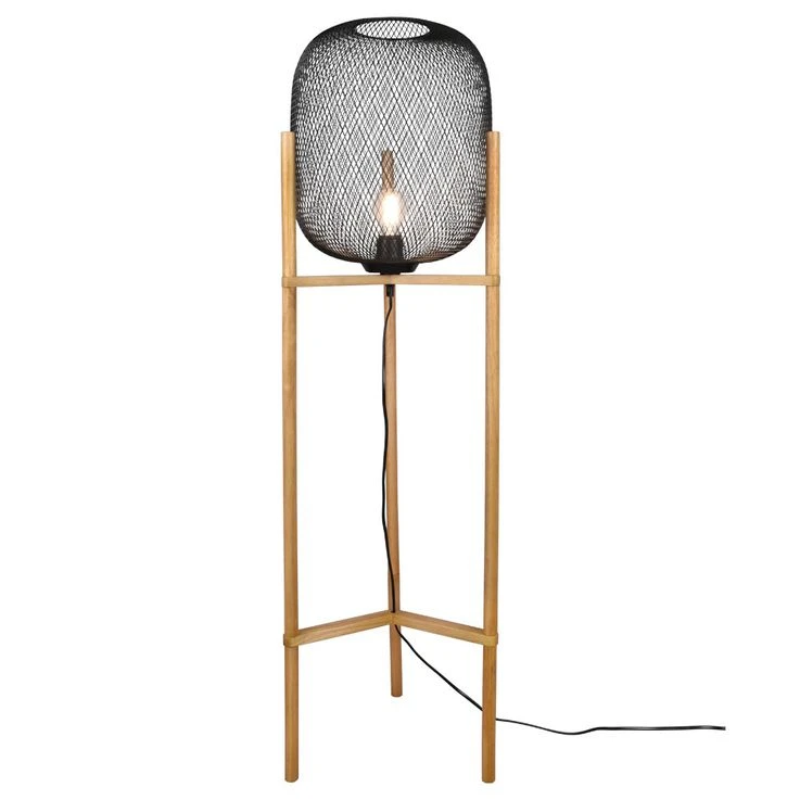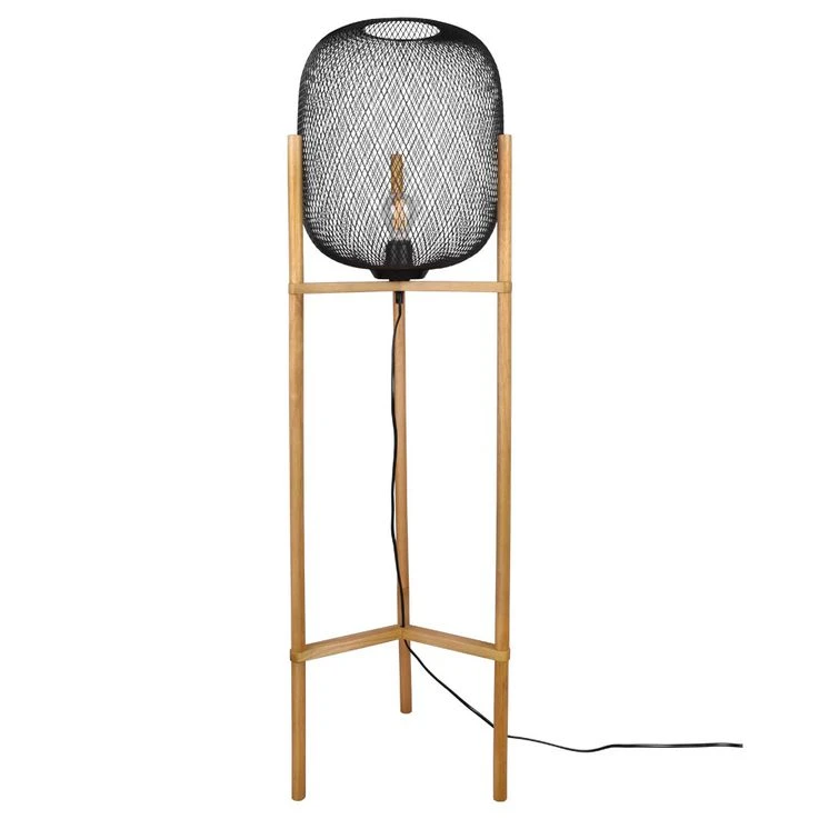 Stehleuchte, Gitter, Holz, Schwarz, Braun, H 122 Cm