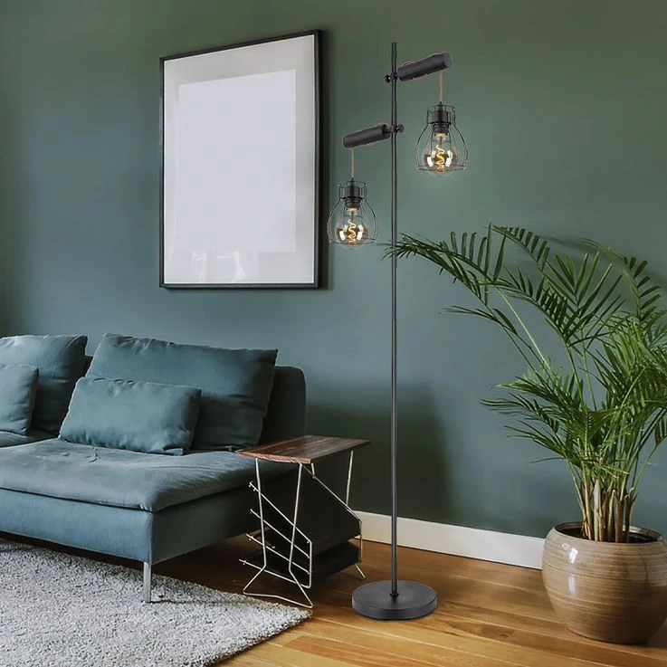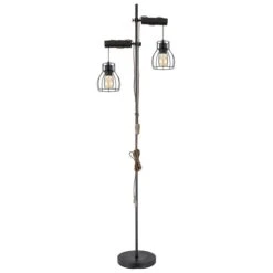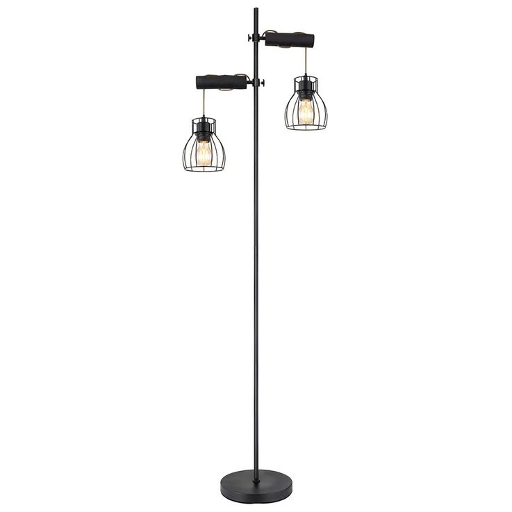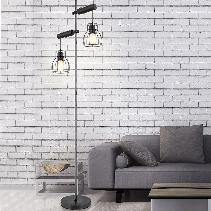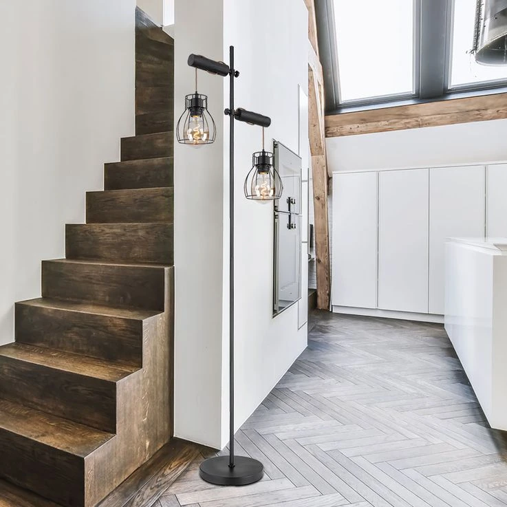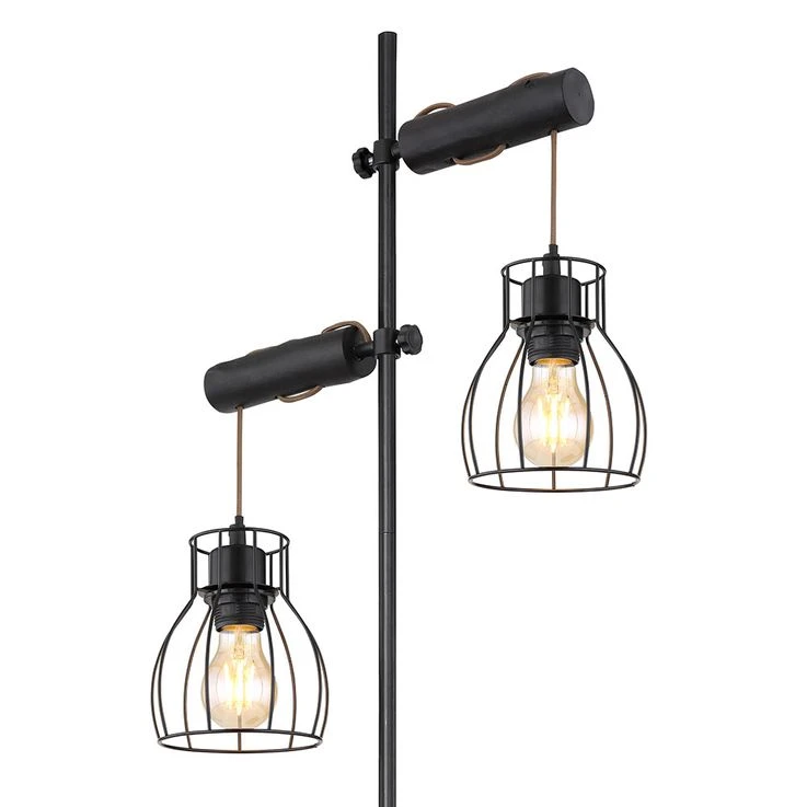 Stehleuchte, Höhenverstellbar, Drahtschirme Schwarz, H 168 Cm