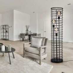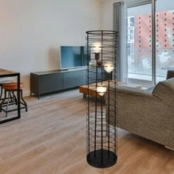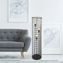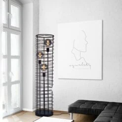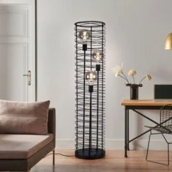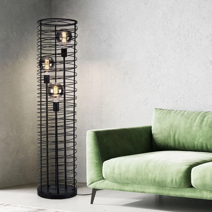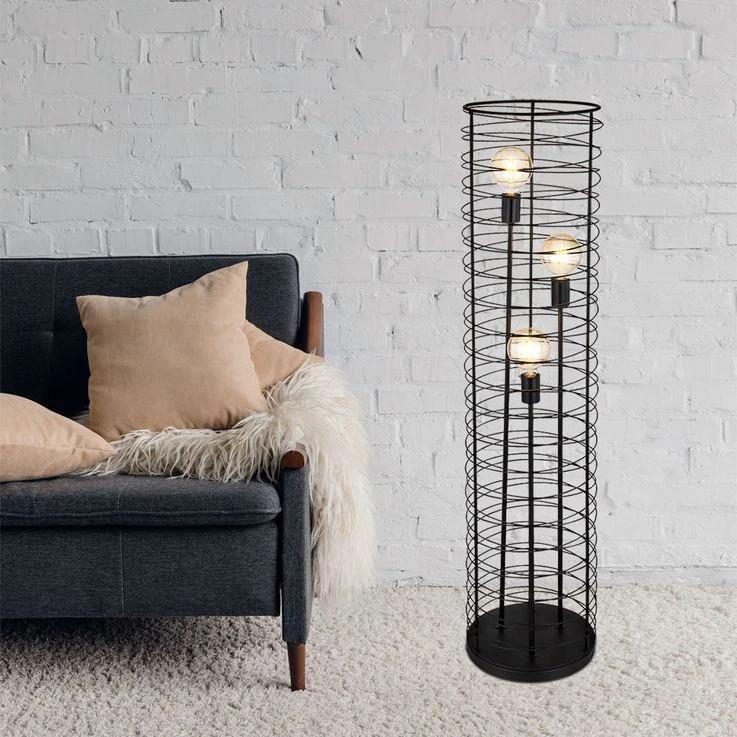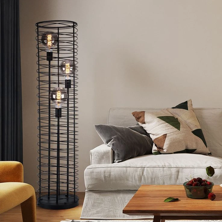 Stehleuchte, Käfig-Design, Drähte Gewickelt, Schwarz Matt