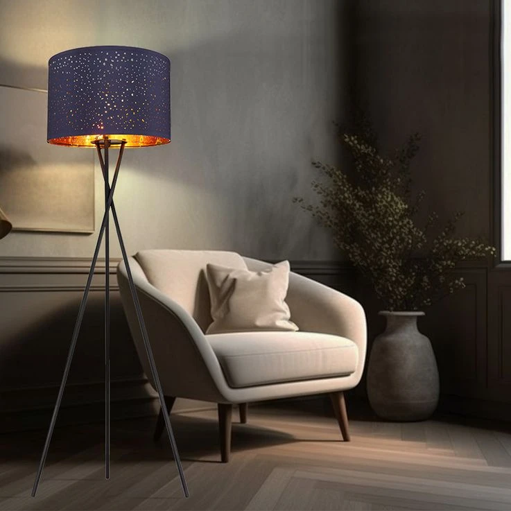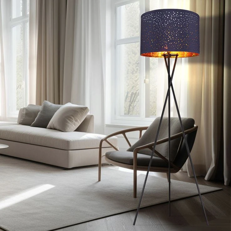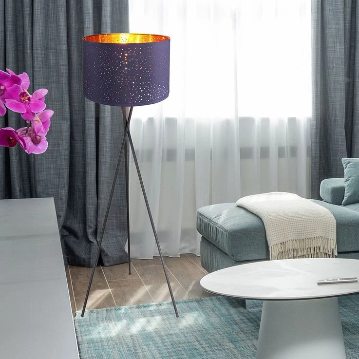 - DESIGN: Die Stehleuchte zeichnet sich durch Ihren blauen Lampenschirm aus der zum echten Hingucker Ihrer Wohnräume wird.