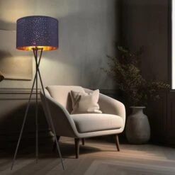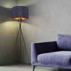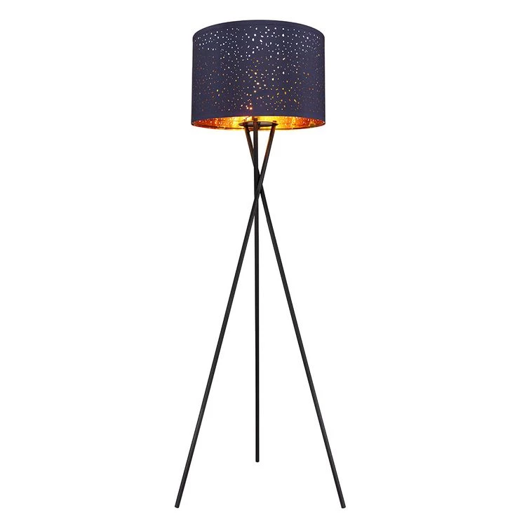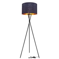 Stehleuchte, Metall, Schwarz, Textil, Blau, Dreibein, D 62cm