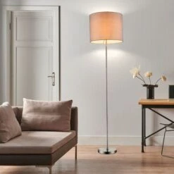 Erhellen Sie Ihren Wohnraum mit dieser wunderschönen Stehleuchte. Der Lampenschirm aus Stoff setzt einen stilvollen Akzent und zeugt von gutem Geschmack. Genießen Sie ein angenehmes Lichtspiel in Ihrem Wohnraum.