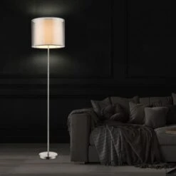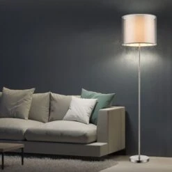 Stehleuchte, Schalter, Nickel Textil, Matt Grau DxH 40x160cm
