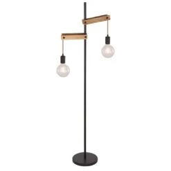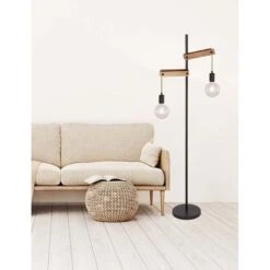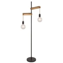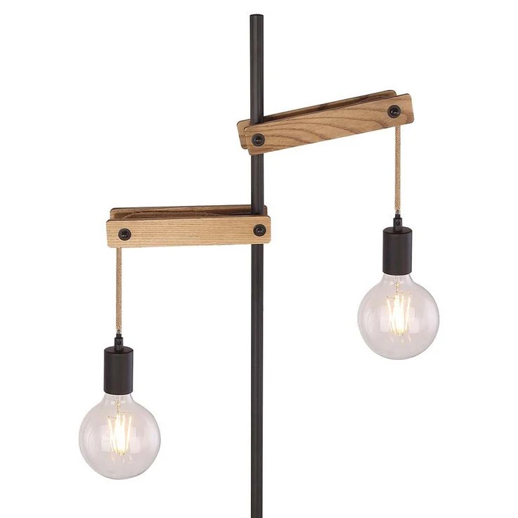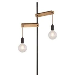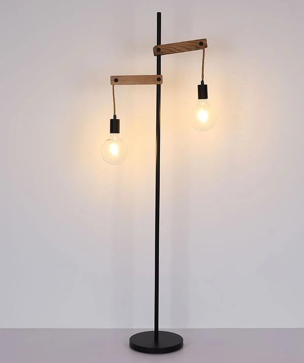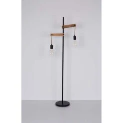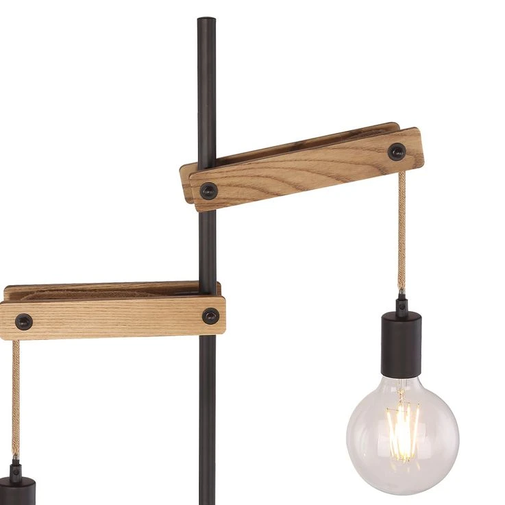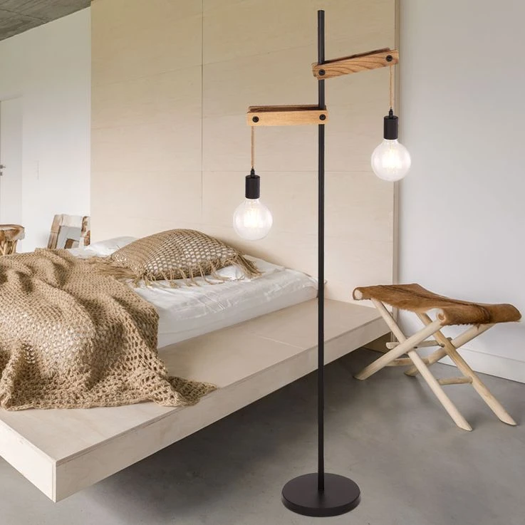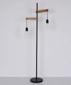 - MATERIAL: Die Materialkombination dieser 1,5 Meter großen Stehlampe aus Holz und mattschwarzem Metall mit Hanfseilen wirkt neutral und zeitlos.