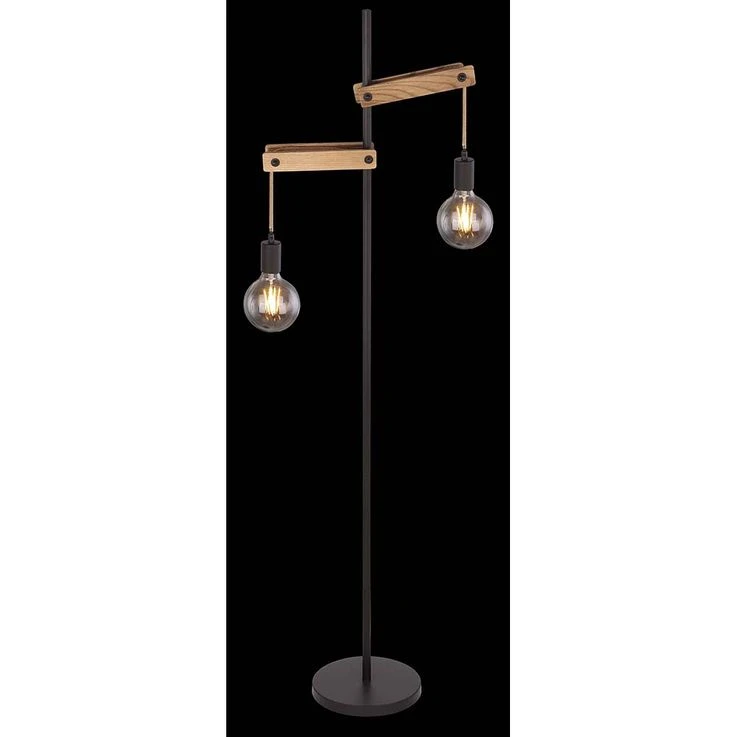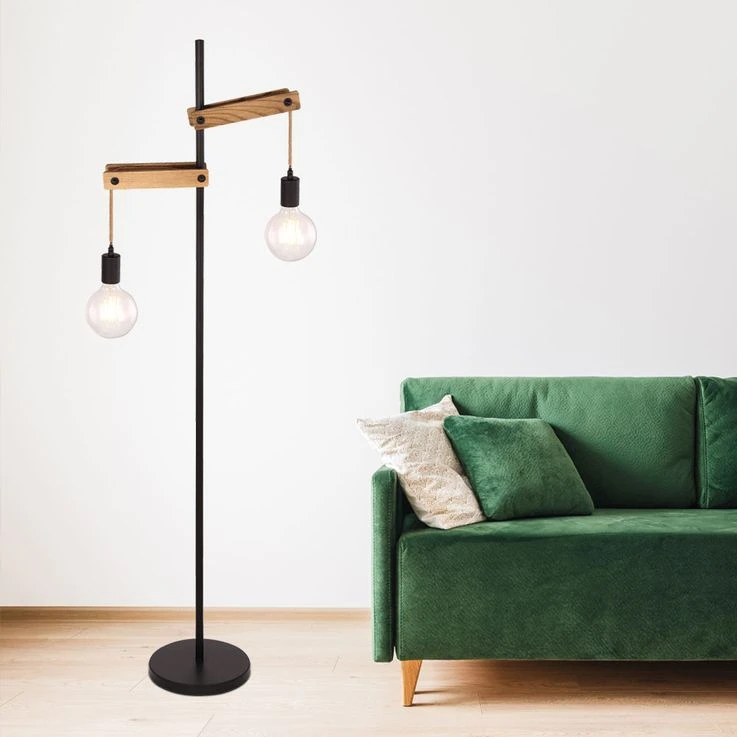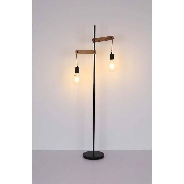 Stehleuchte, Schwarz-matt, Holz Natur, Hanfseil