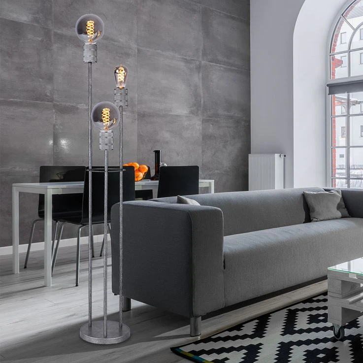Diese verfügen über drei, von silber-metallic getönten Aluminium umrahmte E27-Fassungen, welche Sie mit passenden Leuchtmitteln Ihrer Wahl bestücken können. Dadurch haben Sie die Möglichkeit, Lichtfarbe und Helligkeit nach Ihren Vorstellungen zu bestimmen.