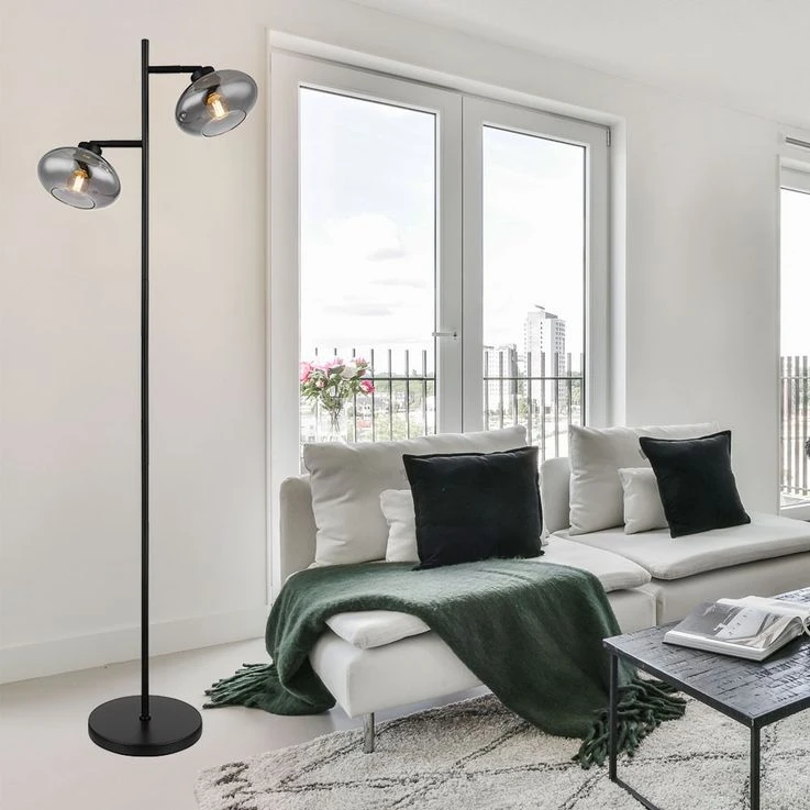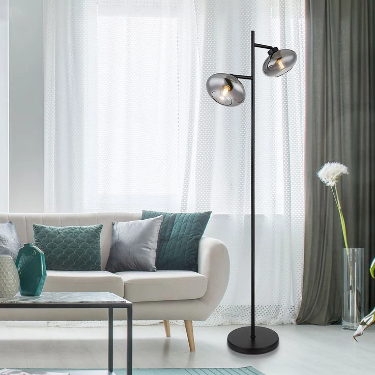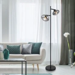 Stehleuchte, Strahler Schwenkbar, Glas Rauchfarben, H 150 Cm