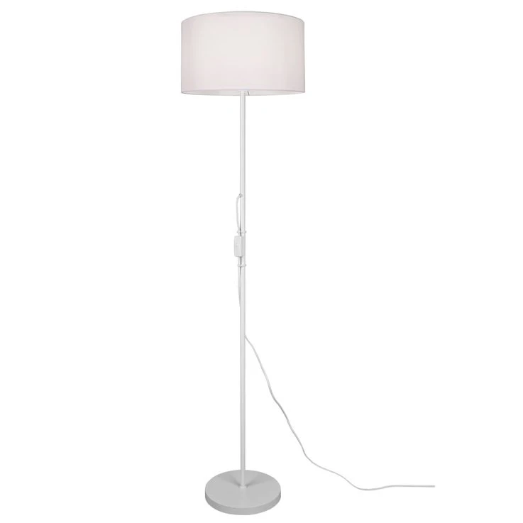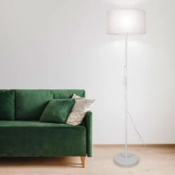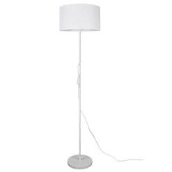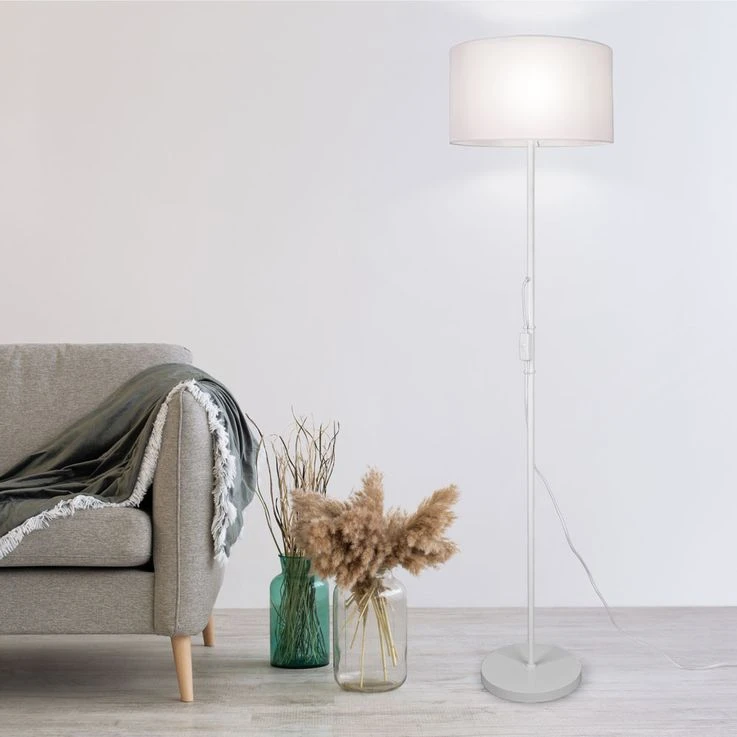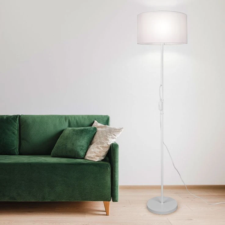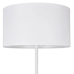 Das reduzierte Design der Stehleuchte ermöglicht ein leichtes Kombinieren mit anderen Wohn- und Dekorationsobjekten. Dank des Stoffschirms erzeugt die Leuchte ein angenehmes und sanftes Licht, welches sich hervorragend als gemütliche Akzentbeleuchtung eignet. Sowohl die Lampenschirme, als auch der Leuchtenfuß sind in einem schlichten Weiß gehalten.