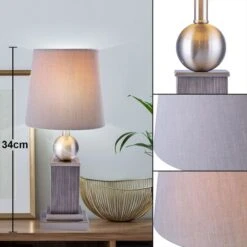 - DESIGN: Diese moderne zeitlose Tischleuchte ist für jeden Raum geeignet. Das Kabel ist 1,5 m lang. Die graue Leuchte hat einen Durchmesser von 15 cm und eine Höhe von 34 cm.
