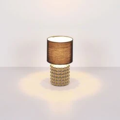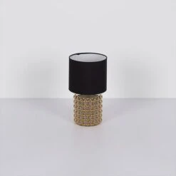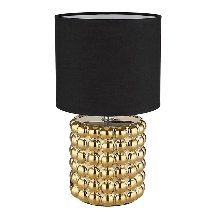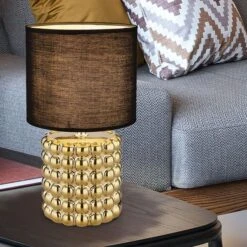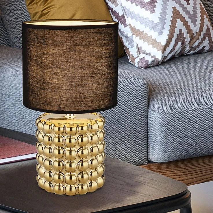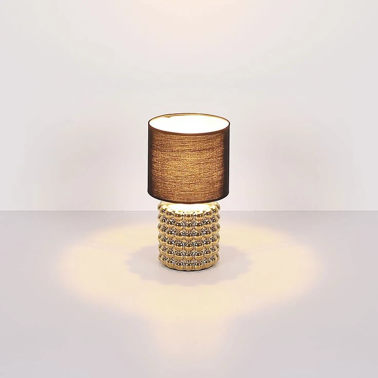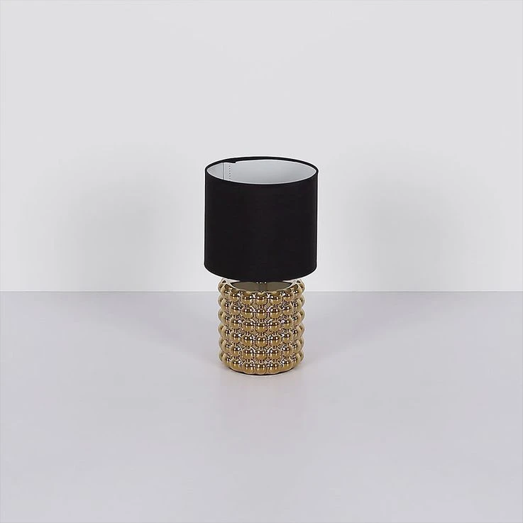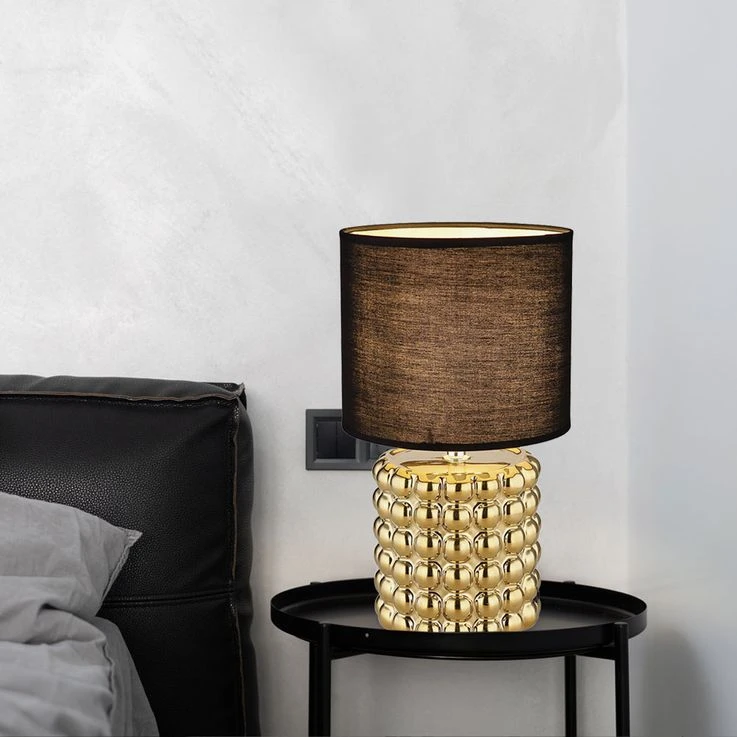 Auf einem formschönen Standbein aus goldfarbenen Keramik in Form eines Zylinders befindet sich eine E14 Fassung mit einem tollen schwarzen Textilschirm (Ø 18,5 cm). Die E14 Fassung ermöglicht Ihnen bis zu einer maximalen Leistung von 40 Watt, selbst über Lichtfarbe und Helligkeit zu bestimmen.