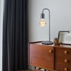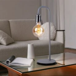Tischlampe, Nickel Matt, Grau, Höhe 43,8 Cm
