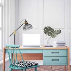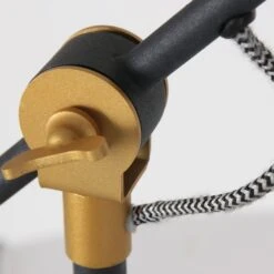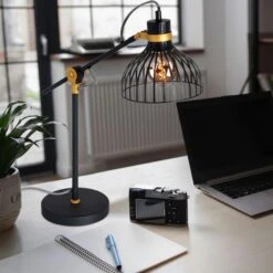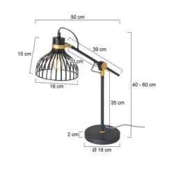 Aus einem runden Sockel ragt eine 35 cm hohe schwarze Metallstange die mit einem beweglichen Element verbunden ist. Der Schirm in Gitteroptik und die goldfarbene Details sorgen für ein vollendetes Design. Die E27 Fassung ermöglicht Ihnen ein Leuchtmittel mit einer max. Leistung von 40 Watt in die Schreibtischleuchte einzusetzen und über Lichtfarbe und Helligkeit selbst bestimmen zu können.