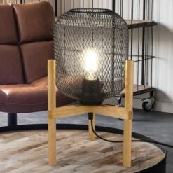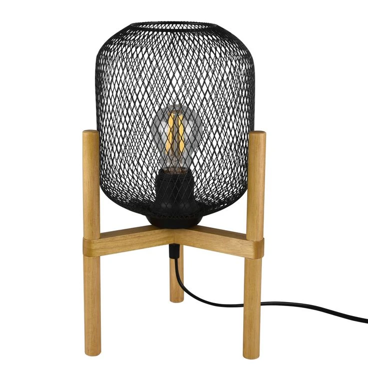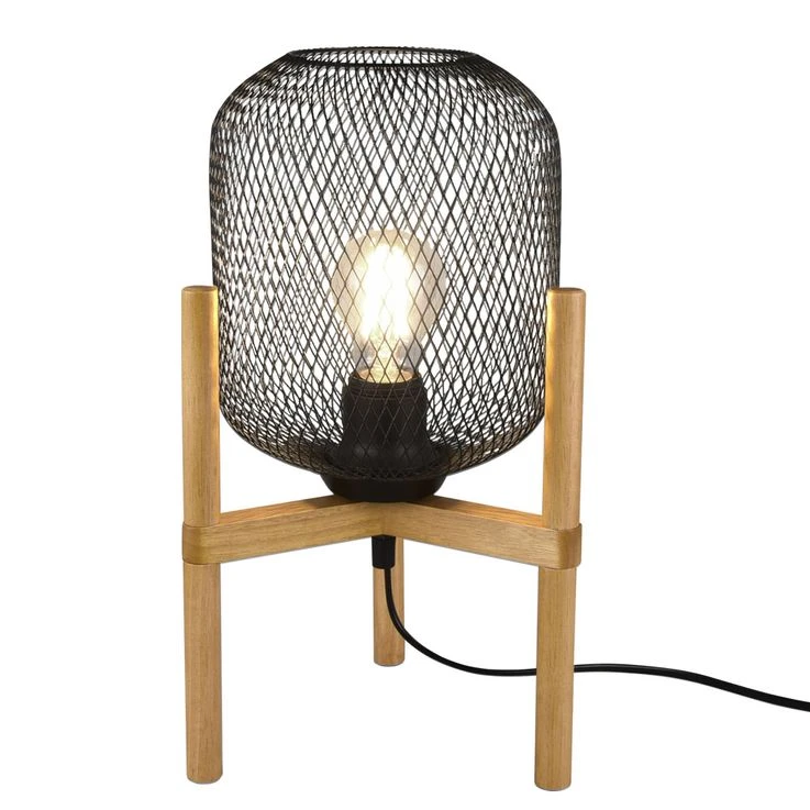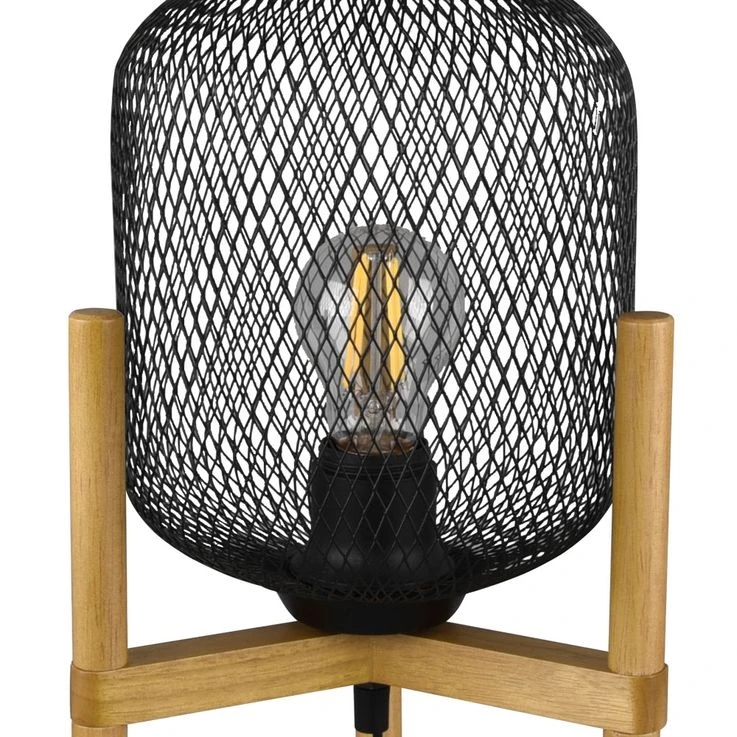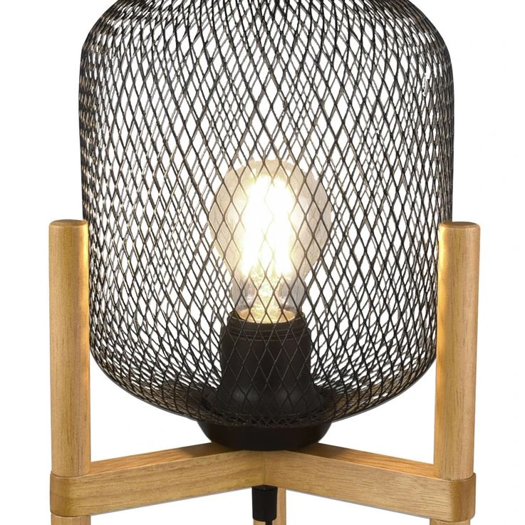 Tischleuchte, Gitter, Holz, Schwarz, Braun, H 37 Cm