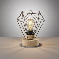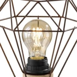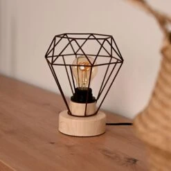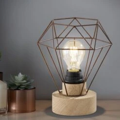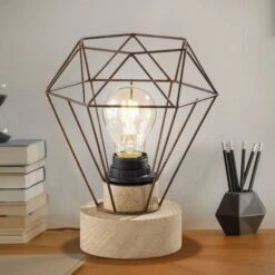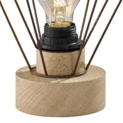 Diese Tischleuchte ist im modernen Retro Stil gehalten und wird durch ihr Design zum neuen Blickfang in Ihren vier Wänden. Der Lampenfuß besteht aus Holz in Eiche Optik und wird durch einen rostfarbenen Metalllampenschirm in Gitteroptik vervollständigt, welcher das gewählte Design unterstreicht.