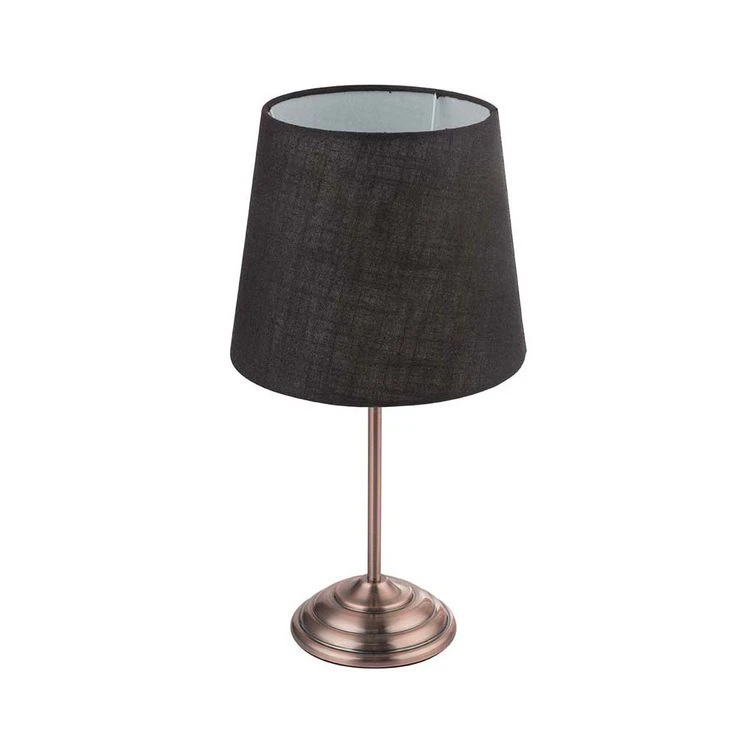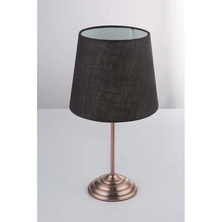 Diese schöne 46cm hohe Tischlampe aus der Serie Jerome, beeindruckt mit einem überaus zeitlosen wie auch modernen Design, was sie zu einem universell einsetzbaren Lichtspender im Wohnraum macht. Durch den klassisch geformten Textilschirm in schwarz, wird das Licht sanft gedämpft. Das Daraus resultierende Lichtbild wirkt besonders wohnlich, was die Leuchte zu einer idealen Zusatzbeleuchtung macht. Ganz egal ob auf einen Nachttisch oder einer Kommode im Flur bzw. Wohnzimmer, sie bringt Leuchtende Akzente in Ihre Wohnräume. Der zierliche Leuchtfuß aus Kuper, machen das Gesamtdesign besonders Modern. Außerdem besitzt die Leuchte über einen praktischen Touch-Schalter, für das ein und ausschalten Die Tischlampe verfügt über eine E14-Fassung, dadurch können Sie das Leuchtmittel (max. 40Watt) frei auswählen, je nach Vorliebe der Lichtfarbe und Lichtstärke. Wegen ihrer Langlebigkeit und Energieersparnis, empfehlen wir Ihnen LED-Leuchtmittel.