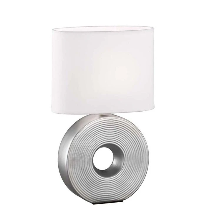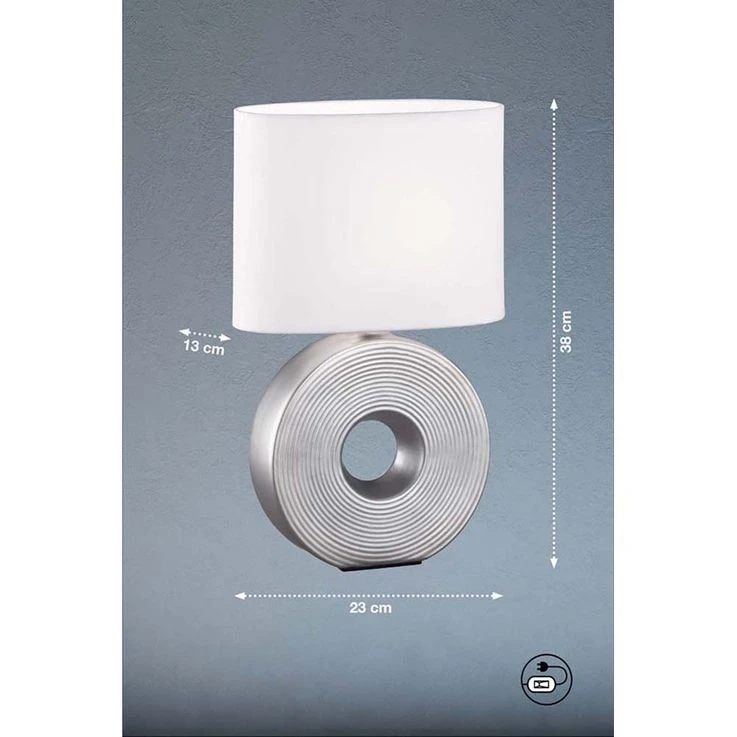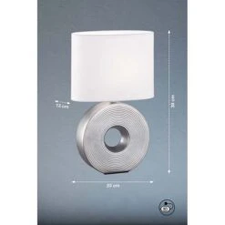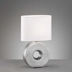 Ein gemütlicher Regentag, Sturm und Eis, die beginnende Dämmerung oder die ersten Stunden des Tages: In all diesen Momenten braucht es ein gemütliches Licht, damit Sie sich rundum wohlfühlen. Mit dieser Tischleuchte entsteht ein schönes Licht als Ergänzung zum hellen Deckenlicht, das eine heimelige Stimmung in Ihre Räume bringt. Mit ihrem runden Lampenfuß in Kombination mit dem Stoff-Lampenschirm entsteht ein sehr dekoratives Design. Der Lampenfuß dieser besonderen Leuchte ist in seiner runden Form sehr stabil und hat einen sicheren Stand. Im Kontrast zum silberfarbenen Sockel ist der Lampenschirm aus einem besonderen Stoff-Gewebe gefertigt. Das Licht wird durch den hellen Stoff-Lampenschirm gedämpft und scheint indirekt in den Raum. Statt direkter Licht-Einflüsse entsteht eine harmonische, gemütliche Stimmung im Raum, in der Sie in den Abendstunden zur Ruhe kommen, loslassen und es sich rundum gemütlich machen. Diese Tischleuchte ist mit ihrem extravaganten Design ein echter Hingucker. Die minimalistische Form und die Materialsprache fügen sich harmonisch in moderne Räume ein. Damit wird diese Tischleuchte nicht nur zur Lichtquelle, sondern auch zum dekorativen Einrichtungsdetail.