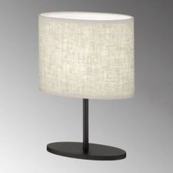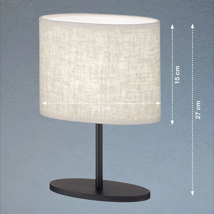 Der schwarz-matte Sockel steht im Kontrast zu dem sandfarbenen Lampenschirm. Sie passt perfekt in ländliche Einrichtungsstile und kann durch das schlanke Design so gut wie überall platziert werden.
