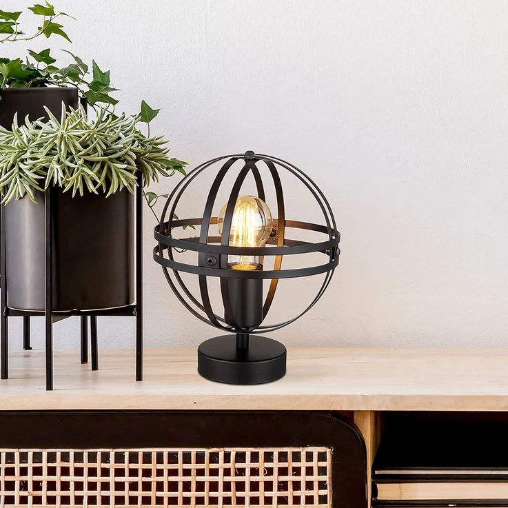 Aus einem runden Sockel ragt eine E27 Fassung, welche von einem runden Metallgitterschirm (Ø 20 cm) ummantelt wird. Die E27 Fassung ermöglicht Ihnen bis zu einer maximalen Leistung von 60 Watt, selbst über Lichtfarbe und Helligkeit zu bestimmen.