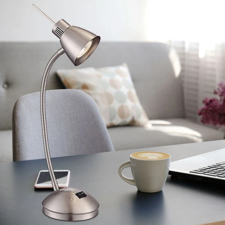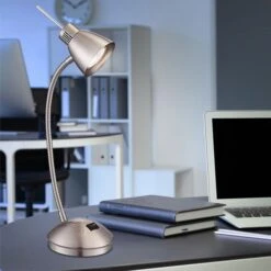 Der Flexo-Arm gibt dieser nickel matten Tischlampe die nötige Flexibilität. Das Leuchtmittel leistet ein 165 Lumen starkes Licht mit einer angenehmen 3000K warmweißen Lichtfarbe. In der gleichen Modellserie steht diese Tischlampe auch in anderen Farben zur Verfügung.