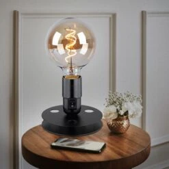 Der aus Metall gefertigte Sockel ist mit einer schirmlosen Fassung versehen, diese verleiht ihr das gewisse Etwas. Die Lampe gibt stets einen freien Blick auf das Leuchtmittel, dadurch eignet sich ein dekoratives Filament Leuchtmittel sehr gut.Â