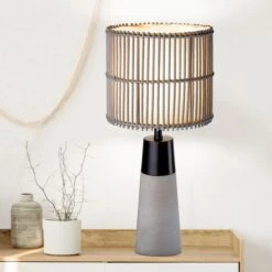 Tischleuchte, Metall, Schwarz-matt, Bambus, Beton, Grau