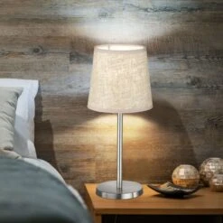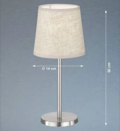 Tischleuchte, Nickel Matt, Leinenstoff Sandfarben, H 30 Cm