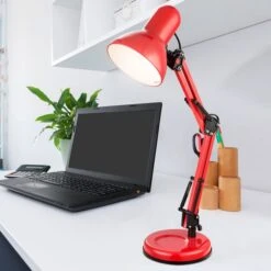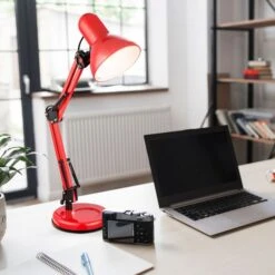 Diese rote Tischleuchte ist die ideale Ergänzung für jeden Schreibtisch. Sie ist sehr sparsam, da LED-Leuchtmittel verwendet werden können. Drei Gelenke erlauben eine optimale Ausrichtung des Lichtscheins, um ein entspanntes Arbeiten zu ermöglichen.