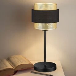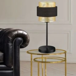 Einfach goldig! Goldeffekte gehen gern Hand in Hand mit der Farbe Schwarz und highlighten die Leuchte und jeden Raum! Ein besonders attraktives Beispiel für gelungene Material- und Farbkombination ist diese Tischleuchte.