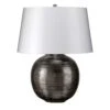 Gold und schwarz gestreifter quadratischer Sockel auf kleinen runden silbernen Blattfüßen. Der Metallstiel ist mit einem geformten, von der Handfläche inspirierten Element und einem Kugelknauf verziert. Schirm aus glasiertem Blattgold.
