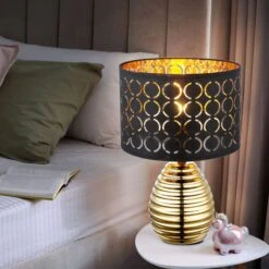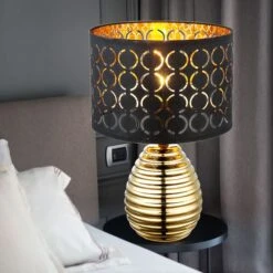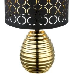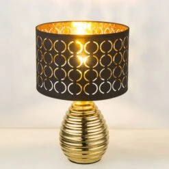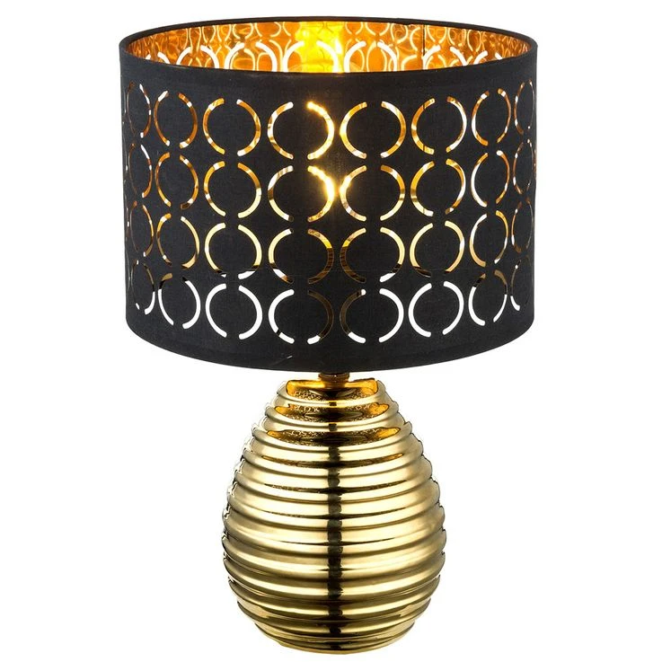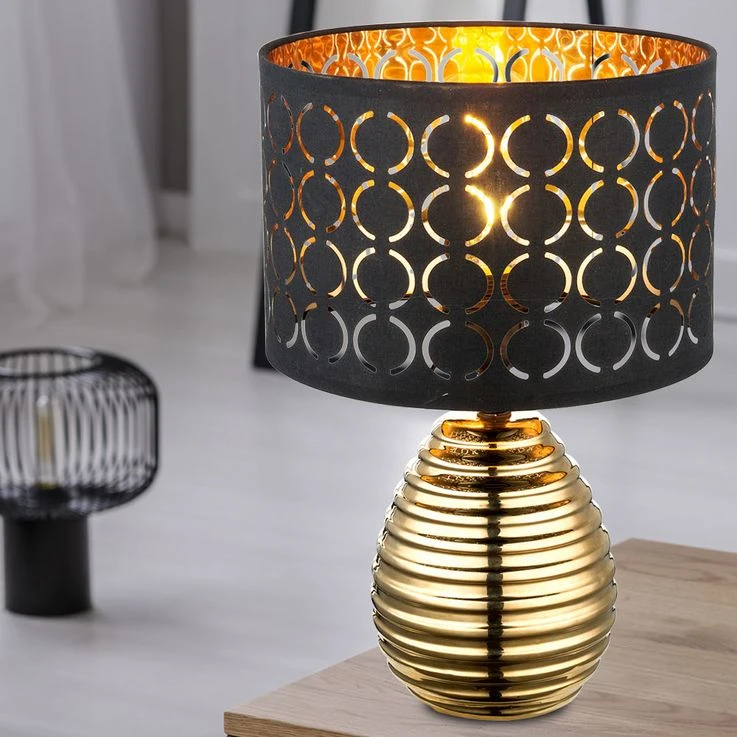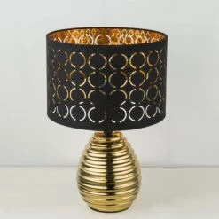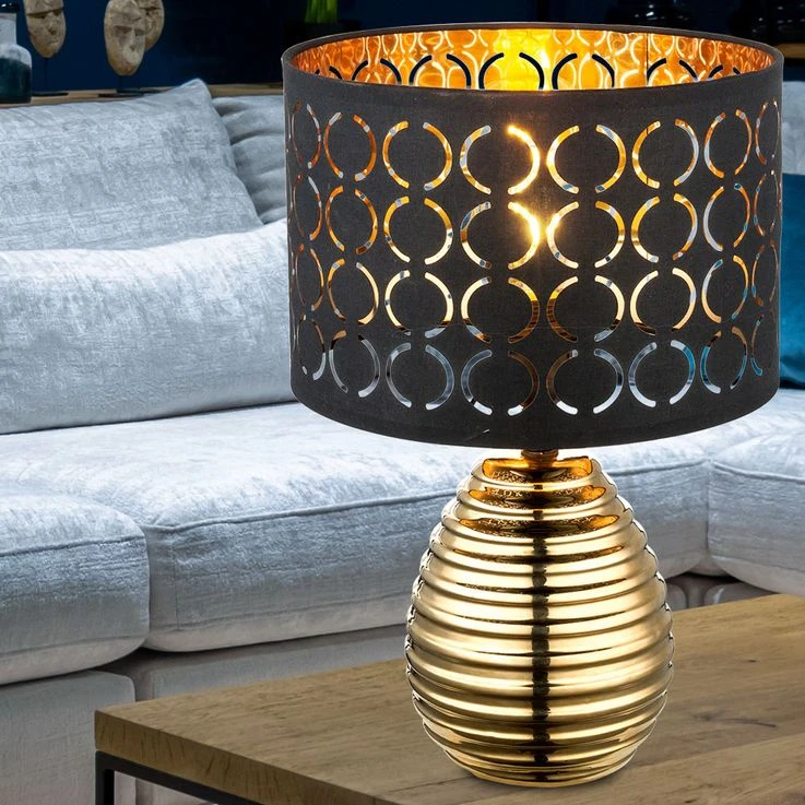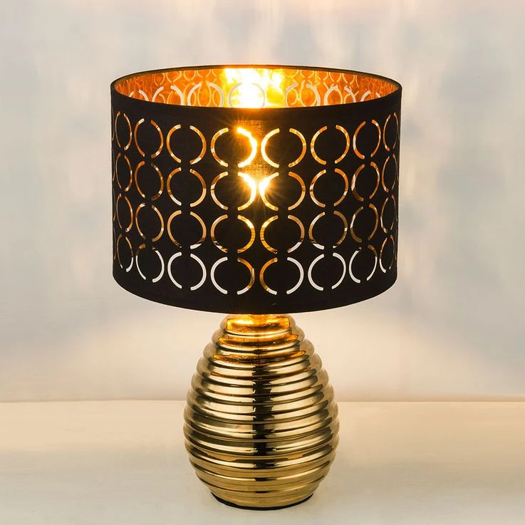 Tischleuchte, Stanzungen, Schwarz, Gold, Samt, H 38 Cm