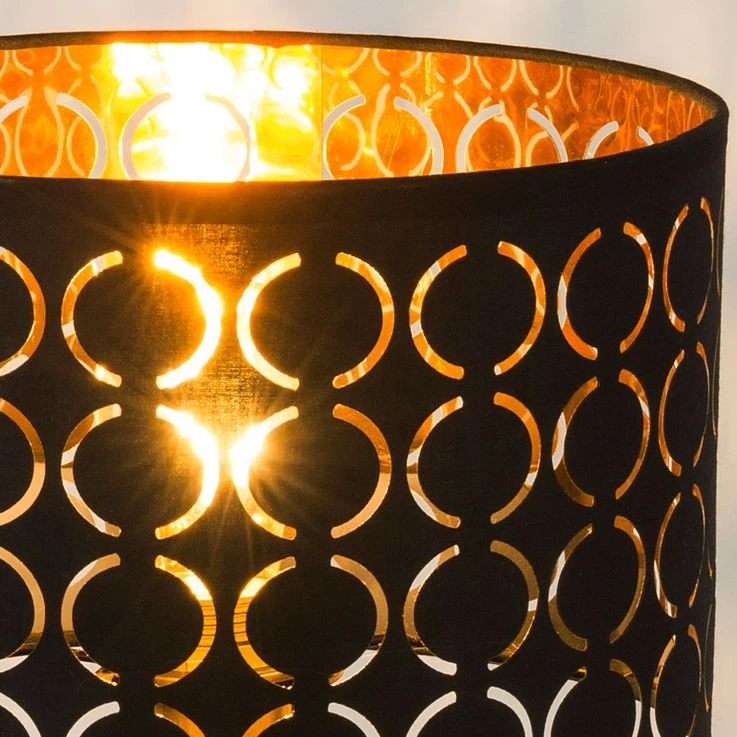 - DESIGNE: Das tolle Design dieser Stehlampe zeichnet sich durch die schöne Farbkombination von schwarz und gold aus, sowie der Lampenschirm mit Dekorstanzungen.