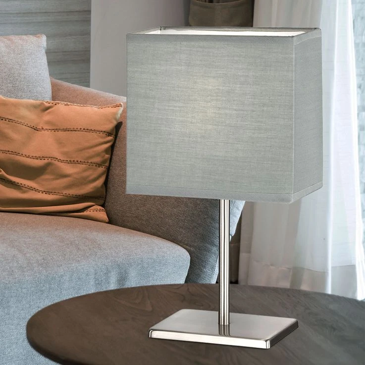 Der nickel-matte Sockel steht im leichten Kontrast zu dem weißen Lampenschirm. Sie passt perfekt in so gut wie jeden Einrichtungsstil und kann durch das schlanke Design so gut wie überall platziert werden.