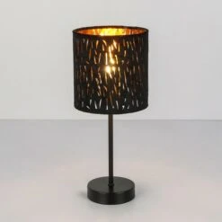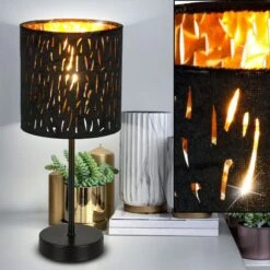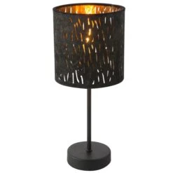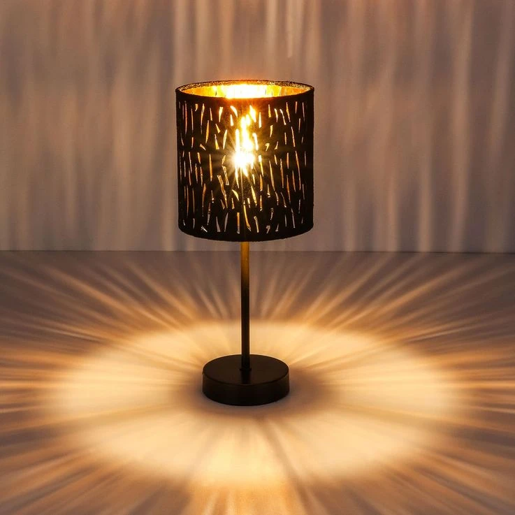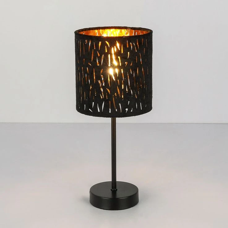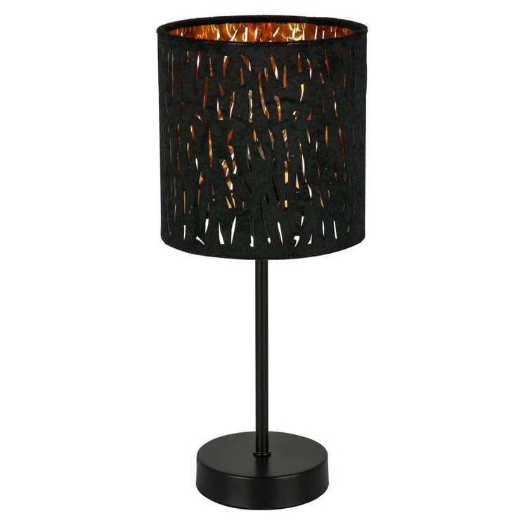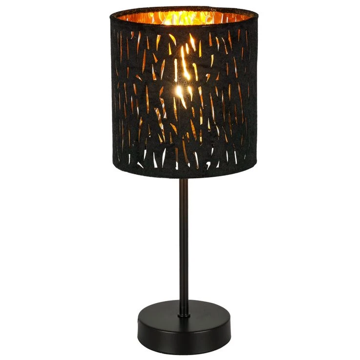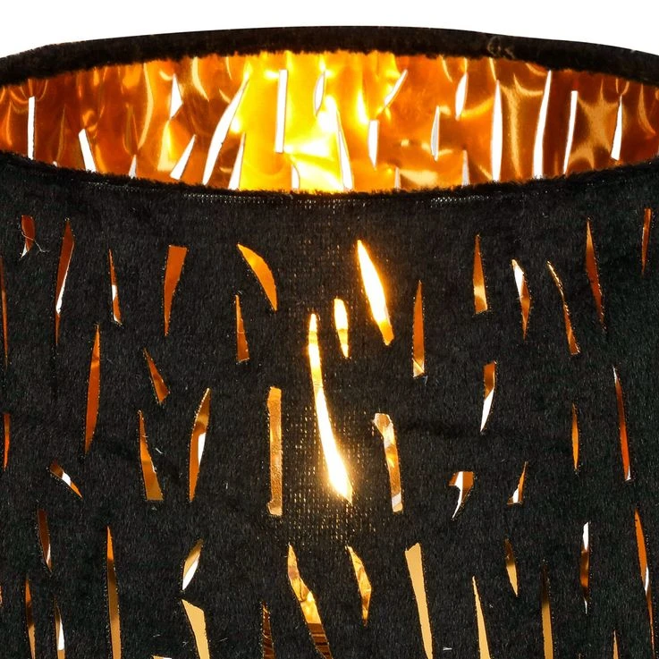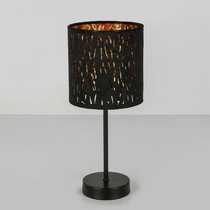 Tischleuchte, Textil Samt, Schwarz, Gold, H 35 Cm