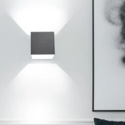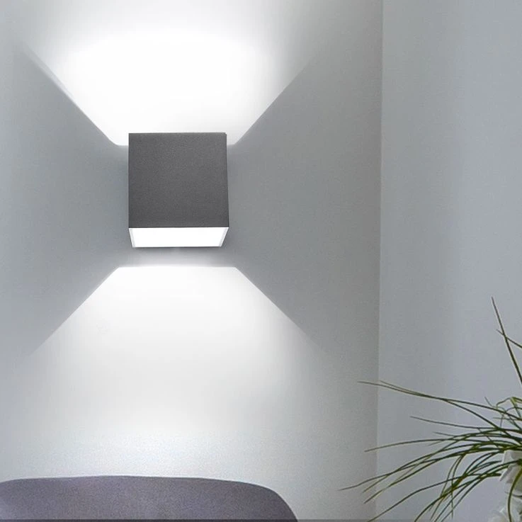 UP & Down Wandleuchte, ALU, Grau, Würfel-Form, L 10 Cm