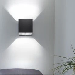 Die Lampe hat einen eleganten schwarzen Farbton. Durch das schlichte Design können Sie die Wandleuchte in jedem Raum und jeden Wohn- und Einrichtungsstil integrieren. Das Licht wird nach oben und nach unten abgegeben und wirft somit einen tollen Lichteffekt an die Wand.