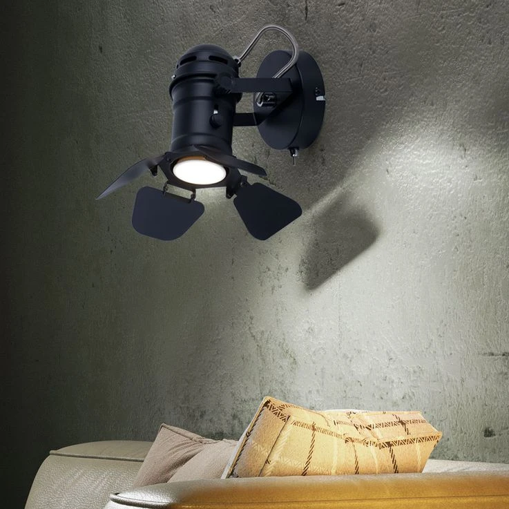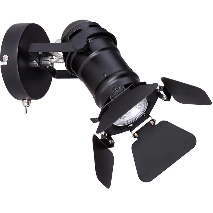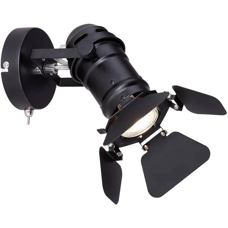 Die am verstellbaren Strahler angebrachten beweglichen Klappen lassen diesen Strahler authentisch wirken. Er verfügt über einen am runden Wandschild eingebauten Ein/Aus Schalter und eine GU10 Fassung die Ihnen die Wahl des passenden Leuchtmittels überlässt.