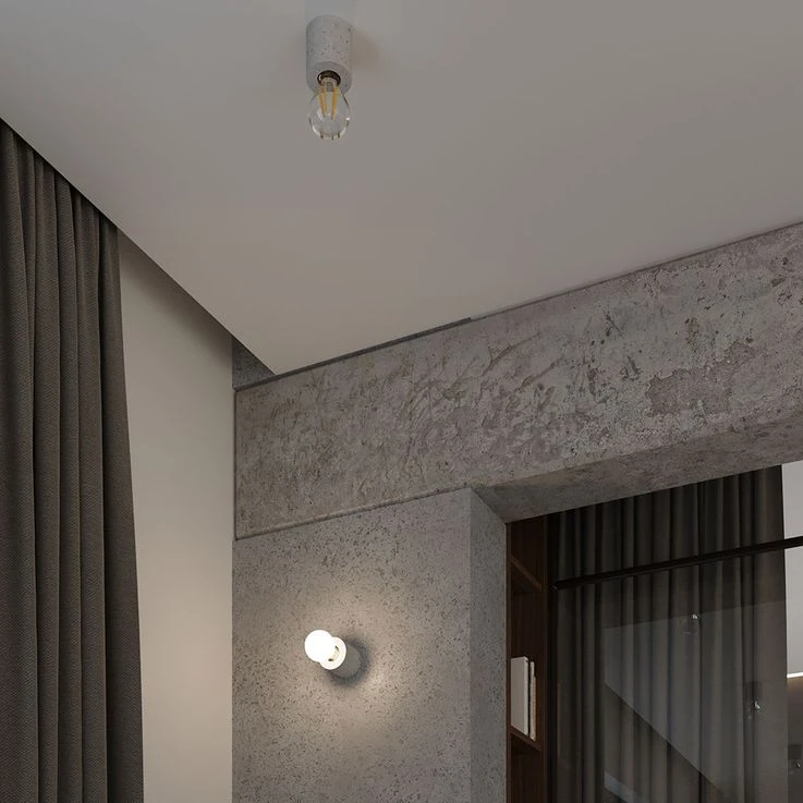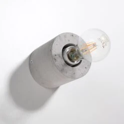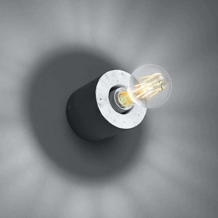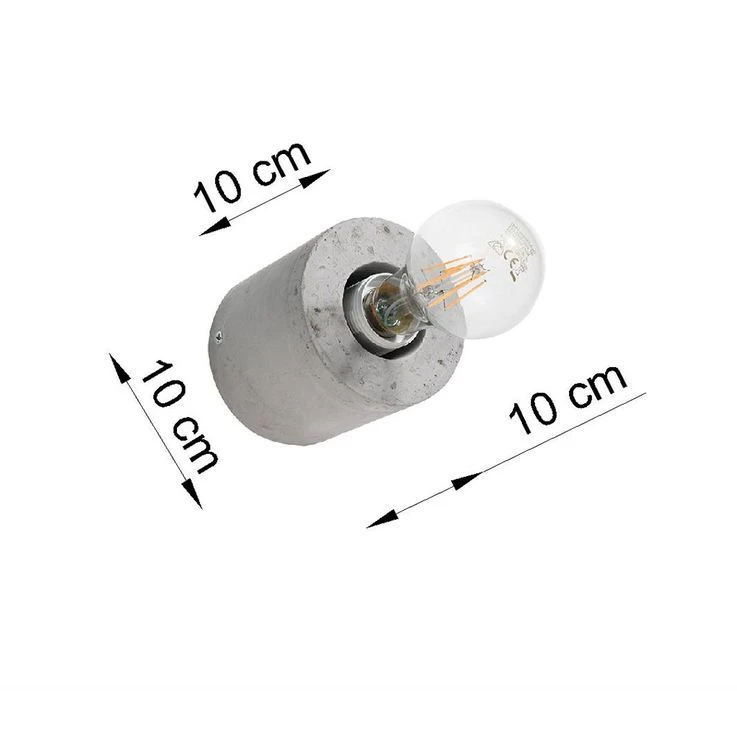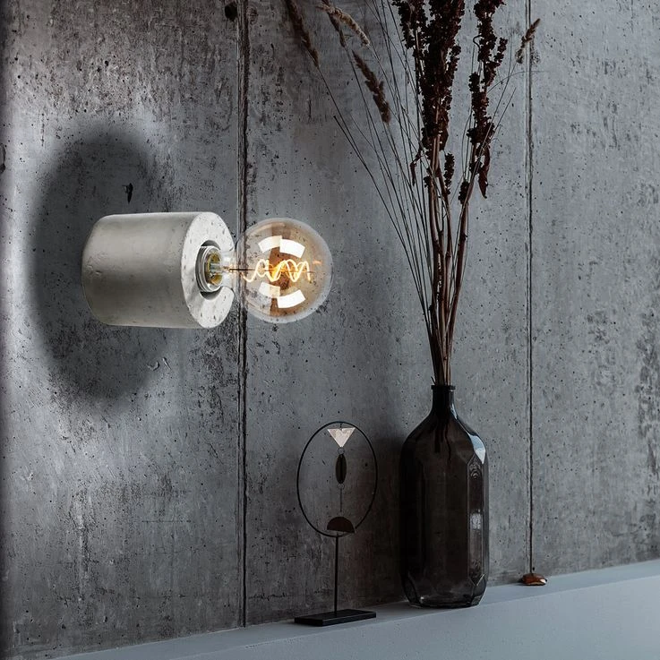 Diese Wandleuchte sorgt durch das Beton für eine besondere Atmosphäre in Ihrem gewählten Wohnraum. Die Lampenhalterung ist in grau gehalten und 10 cm breit und hoch.