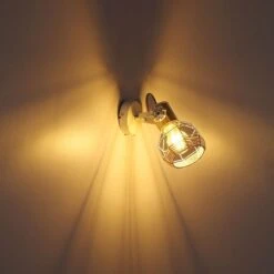 Das weiße Metall und das Naturholz gepaart mit dem naturfarbigen Bastschirm machen diese Innenleuchte zu einem Blickfang in Ihrem Zuhause. Dieser Strahler mit optisch effektvollen Stellrad am Metallgehäuse lässt sich mittels Schalter ein- und ausschalten. Durch die freie Wahl des Leuchtmittels (E27/max. 40W) können Sie selbst über Lichtstärke und Lichtfarbe dieser Innenlampe bestimmen. Aufgrund ihrer Langlebigkeit und Stromersparnis empfehlen wir LED Leuchtmittel.