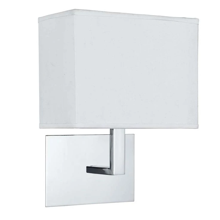 Diese Chromwandleuchte mit weißem rechteckigem Stoffschirm ist stilvoll und klassisch. Es hat eine rechteckige Wandplatte mit Chromfinish und einen rechtwinkligen Arm mit einem schmalen, länglichen weißen Trommelschirm darüber. Es bietet ein schönes Ambiente und wird von einem handlichen Wippschalter gesteuert.