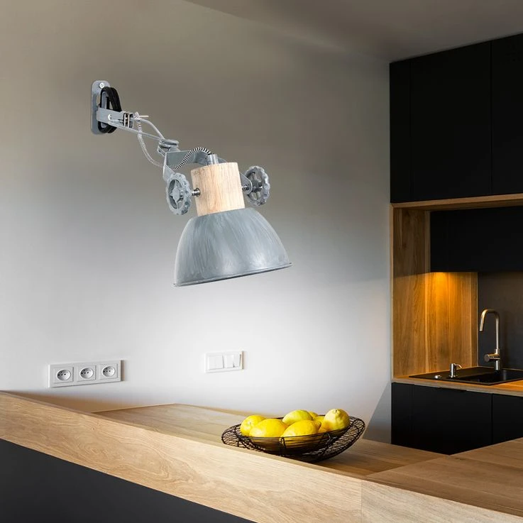 Der graue Spot in Kombination mit dem Holz verleiht dieser Leuchte einen Retro Touch, während das Design ihr einen industriellen Look verleiht. Für eine optimale Lichtpositionierung ist der Strahler dreh- und neigbar. Durch die vorhandene E27-Fassung ist Ihnen die Wahl des Leuchtmittels und somit die Wahl der Lichtfarbe und -stärke vorbehalten.