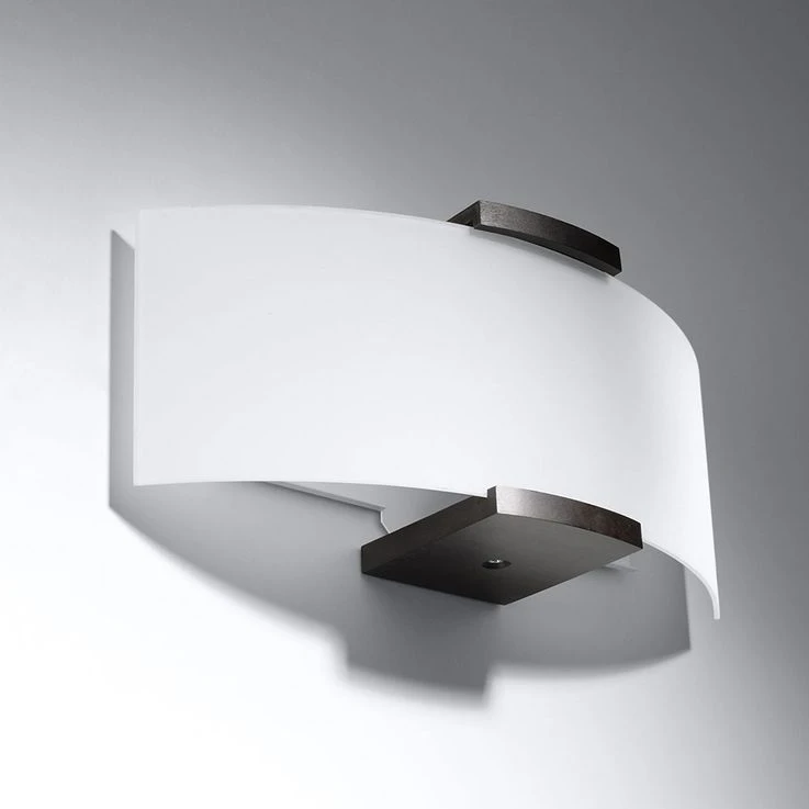- MATERIAL: Diese Innenleuchte besteht aus zwei Holzbügeln in wenge (dunkelbraun), welche eine satinierte Glasscheibe halten.