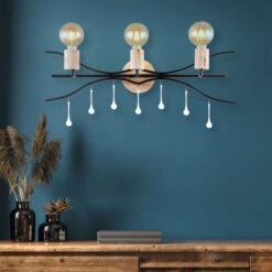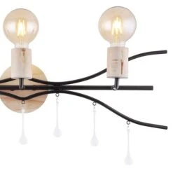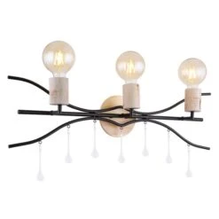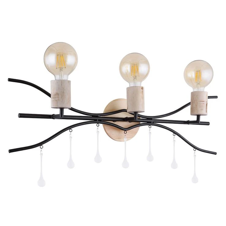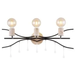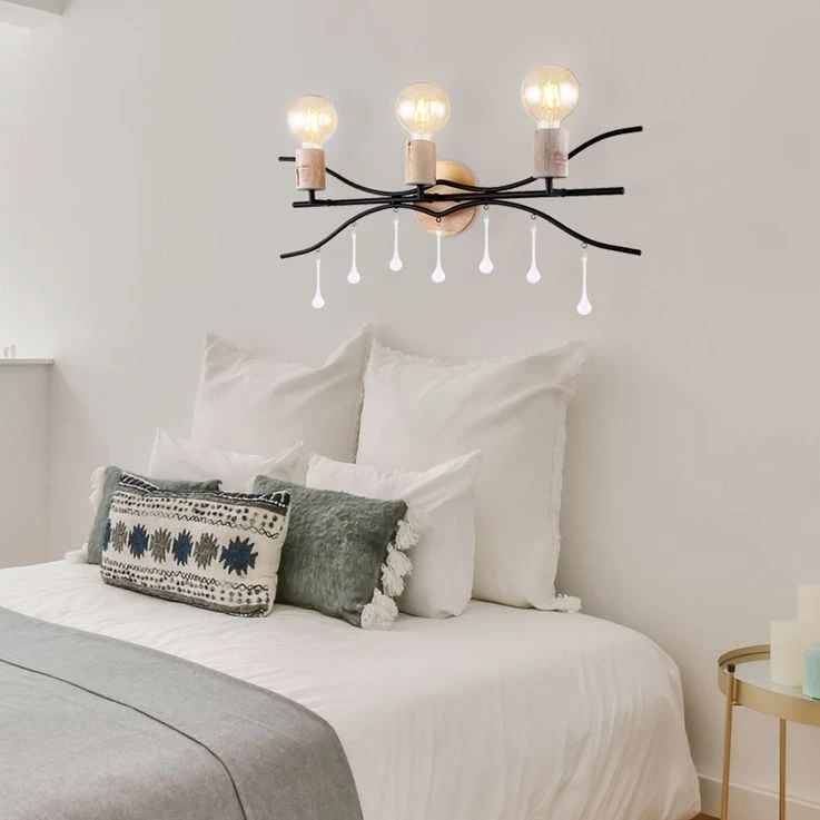 - MATERIAL/FARBE: Die aus schwarzem Metall gefertigte Wandleuchte verfügt über drei E27 Fassungen aus Holz.