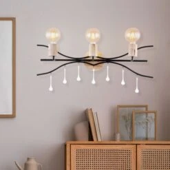Wandleuchte, Metall, Glas, Schwarz, Natur, 3 Flammig, B 76cm
