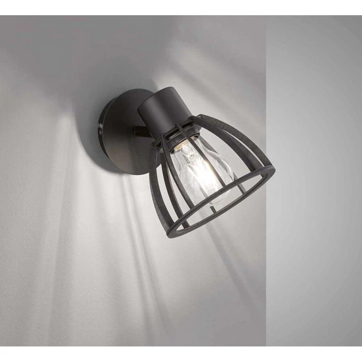 Eine charakterstarke Wandleuchte in mattem Schwarz, die durch ihren angesagten Industrial-Look überzeugt. Der gitterartige Lampenschirm ist ein Blickfang in jedem Raum und stellt für sich schon eine dekorative Bereicherung dar. Die Spotleuchte ist schwenkbar, das Licht (Leuchtmittel mit maximal 25 Watt) erzeugt durch die Gitterstäbe interessante Schattenkombinationen und Lichtspiele, die eine einzigartige Atmosphäre schaffen – ob im Wohnzimmer, im Schlafzimmer, in der Küche oder auch im Flur. Am Korpus der Leuchte angebracht ist ein Schalter, mit dem Sie den Wandspot ganz einfach bedienen können. Denkbar ist auch eine Verwendung auf dem Balkon oder im Hobbykeller – die Spotleuchte Tilda ist eine Allrounderin, die überall für Chique und tolle Lichtverhältnisse sorgt.